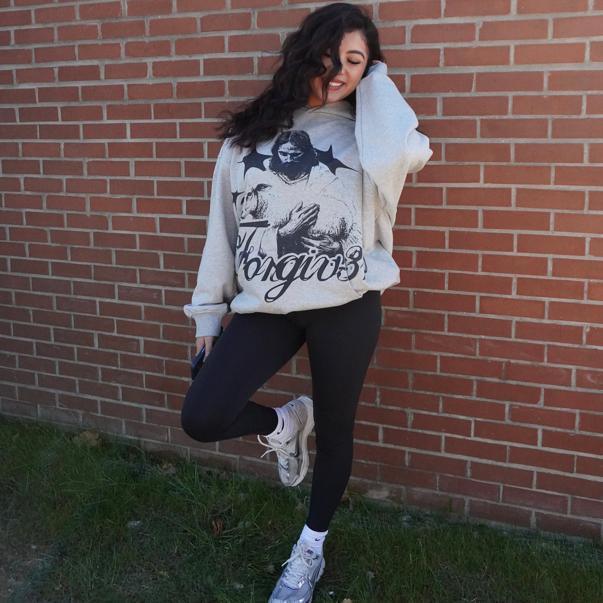 “Forgiv3n” across the front reflects the heart of the gospel: grace given, not earned. No matter where you’ve been or what you’ve carried, you are seen, held, and forgiven. This piece is meant to be worn as a quiet testimony faith lived, not forced.